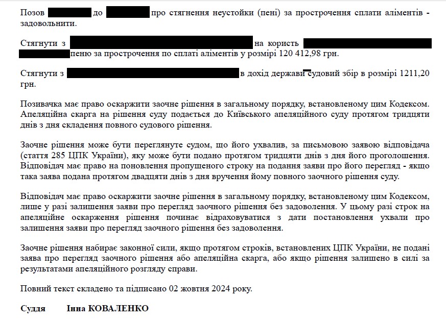 Кейс 1: «Стягнення пені за аліментами у розмірі понад 120 тисяч гривень»